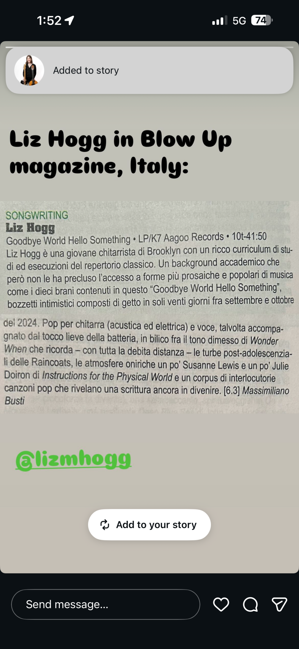 5. Youtube: Liz Hogg live in Chicago, IL at Montrose Saloon 11.18 / Facebook 1, 2, 3